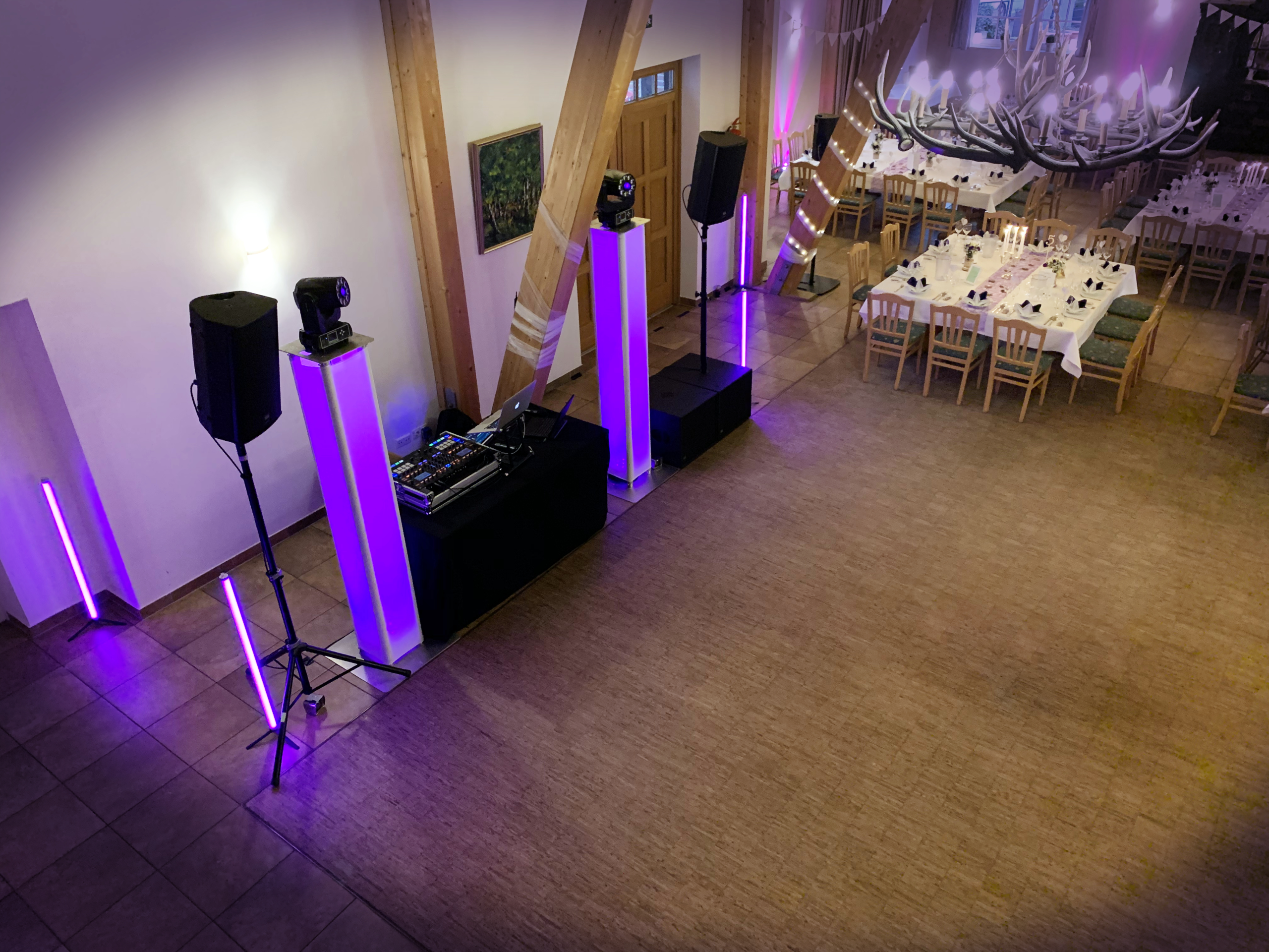 Auf Wunsch können wir Ihre Veranstaltung druckvoll und clubtauglich beschallen und so für das richtige Partyfeeling sorgen. Aber auch eine dezente Hintergrundbeschallung, die sich weder optisch, noch tonal in den Vordergrund stellt, ist kein Problem.